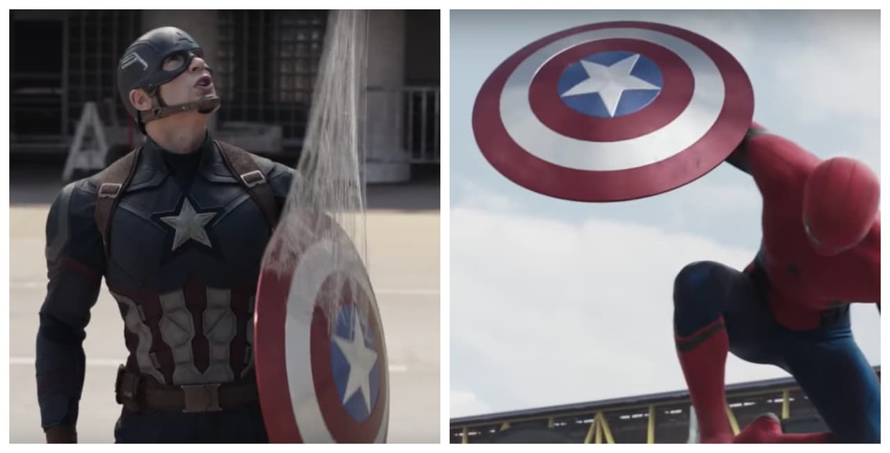 Por último tenemos una de las escenas más memorables de la película, una que se había filtrado meses atrás: la aparición de Spiderman. Allí, Peter despoja al Capitán América de su escudo con una telaraña, pero en la siguiente toma el mismo está bastante limpio. ¿Dónde quedaron las telarañas?