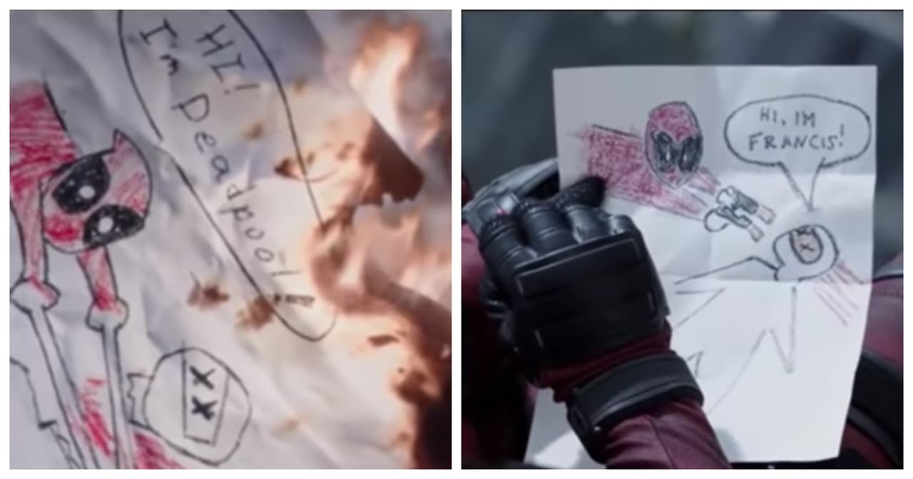 Pudo haber sido perfecta la primera escena, pero un error hizo que no lo fuera. Se da cuando nos muestran un dibujo que ha hecho Deadpool, en el que se le ve peleando con los malos y diciendo «Hi I'am Deadpool», pero cuando la escena avanza (en una especie de elipsis) el superhéroe está sentado dibujando el papel y en éste dice: «Hi! I’am Francis».