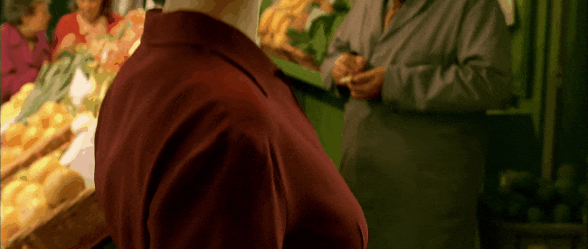 El film, por ejemplo, se desenvuelve con colores intensos: rojos, naranjas y amarillos que nos indican que hay romance, amor y nostalgia.