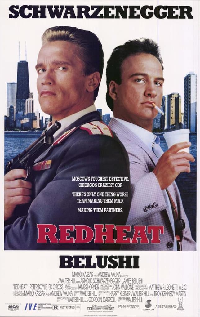 Arnold Schwarzenegger y James Belushi juntos en la gran pantalla, interpretando a compañeros de aventuras, es algo que solo pudo pasar en los ochenta (y nuevamente en los noventa). La película se llamó Red Heat (traducida en España como Danko: Calor Rojo y Al Rojo Vivo para Latinoamérica) e incluyó en el reparto figuras como Peter Boyle, Laurence Fishburne y Ed O’Ross.