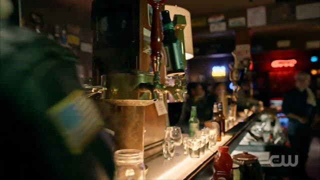 Como muchos fans saben, el piloto Hal Jordan, oriundo de Coast City, es elegido como el primer Green Lantern de la Tierra tras la trágica muerte de su antecesor Abin Sur. En esta escena, Oliver y Amanda Waller comparten un trago en un bar en Coast City, mientras en el fondo se ve la clásica chaqueta que Hal ocupa en los comics, sin mencionar que incluye la etiqueta con su apellido.