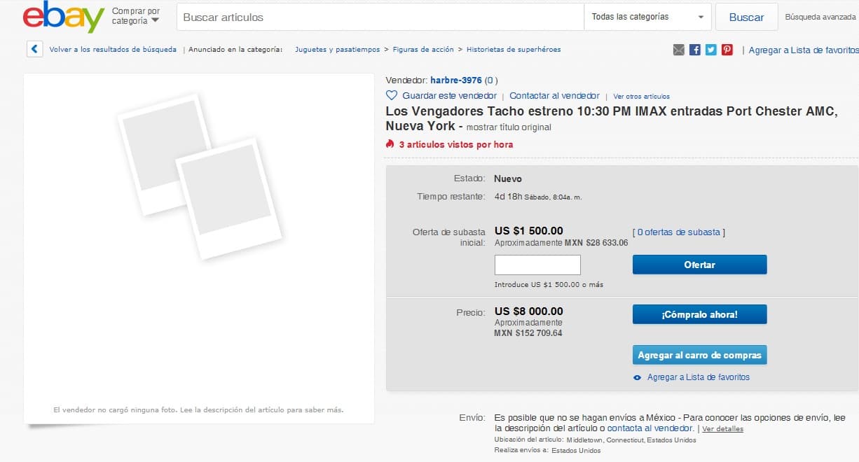 En eBay se encuentran algunos boletos rondando los miles de dólares. Hay desde mil hasta los precios más ridículos, como 8 mil dólares estadounidenses:
