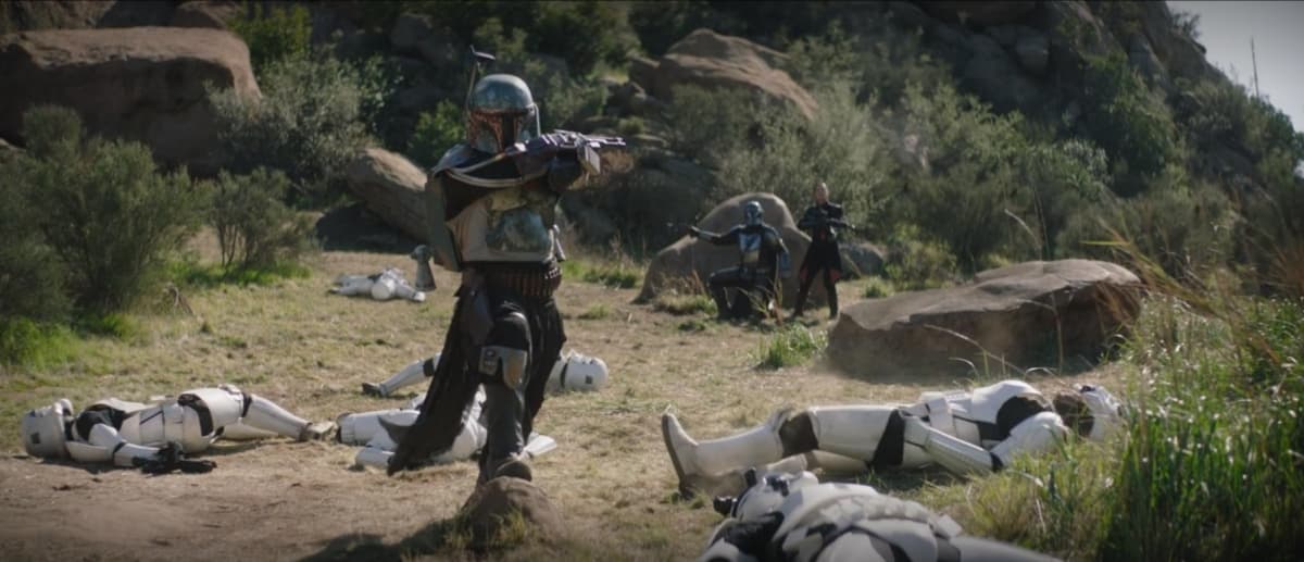 Después de un enfrentamiento entre Boba Fett, Fennec Shand y Mando contra un pelotón imperial, Moff Gideon decidió enviar a sus Dark Troopers, soldados de élite del Imperio, para terminar el trabajo.