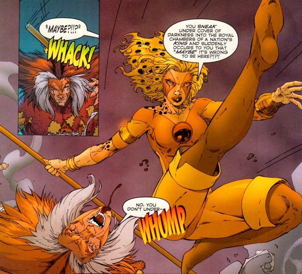 Pero no es así, ya que se deja en claro casi desde el principio que Cheetara es una guerrera, y por lo tanto se comporta como tal.