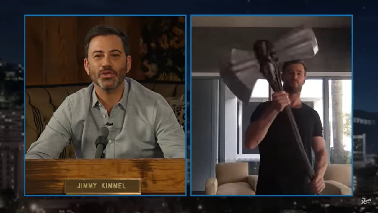 Casi al finalizar la entrevista, le demostró a Jimmy que también tenía el Stormbreaker que se utilizó en Avengers: Infinity War.