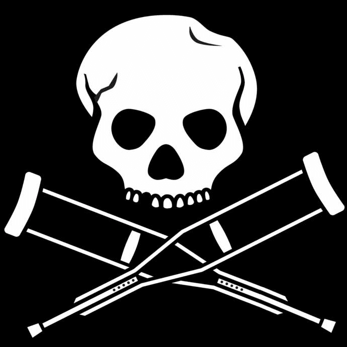 Una calavera con muletas representa a los idiotas más grandes de la televisión, quienes se colaron a la pantalla grande en 2002.