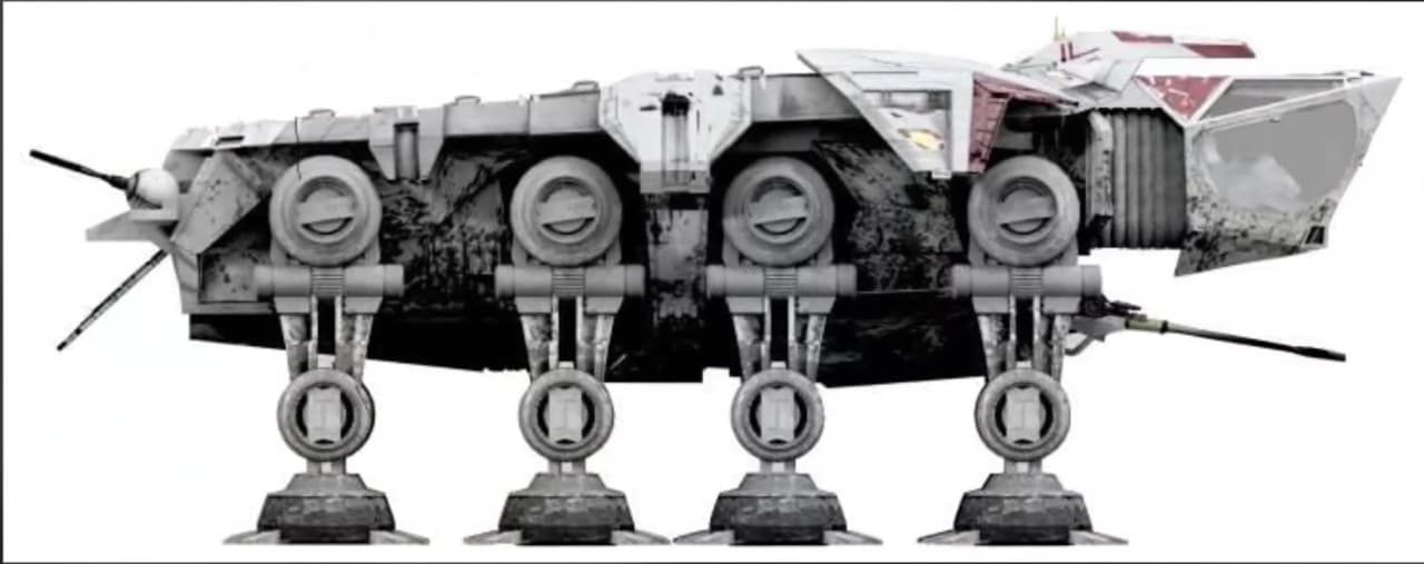 Este vehículo parecido a una oruga gigante, era utilizado como transporte de tropas durante la república. Si bien no es un vehículo exclusivamente de combate, es parte de nuestros queridos AT.