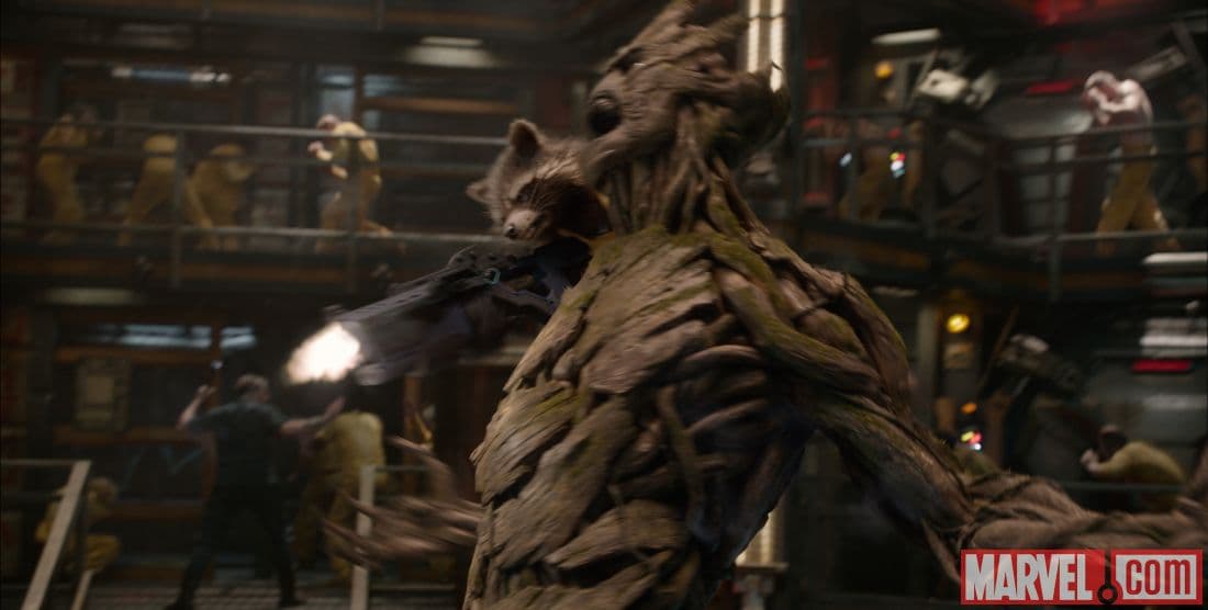 Cuando a Gunn se le preguntó cuál era su escena favorita del tráiler, éste comentó que es la que muestra a Groot y Rocket disparando y peleando juntos en el centro de una habitación contra una enorme cantidad de maleantes. Además de ser su escena favorita de todo el film, éste asegura que a nosotros nos encantará verla en su totalidad cuando se estrene la película.