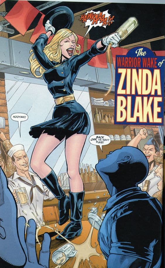 La mujer tras la máscara de Lady Blackhawk también es una piloto de corte militar, así como una "viajera del tiempo": proviene de la época donde estalló la Segunda Guerra Mundial.