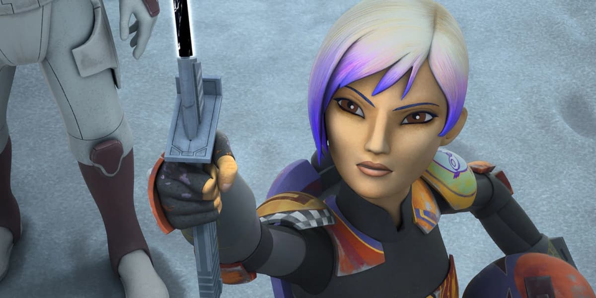 En Rebels fue Sabine la que le dio a Katan el Darksaber por primera vez, y a pesar de que era renuente en un principio, lo acepta, para perderlo después de unos años frente a Moff Gideon.