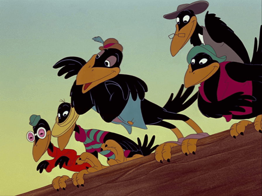 En Dumbo, el grupo de cuervos que primero se burlan de Dumbo y luego se maravillan con su vuelo, son una caricatura de los actores blancos que imitaban y ridiculizaban a los esclavos afroamericanos de las plantaciones del Sur de EUA.