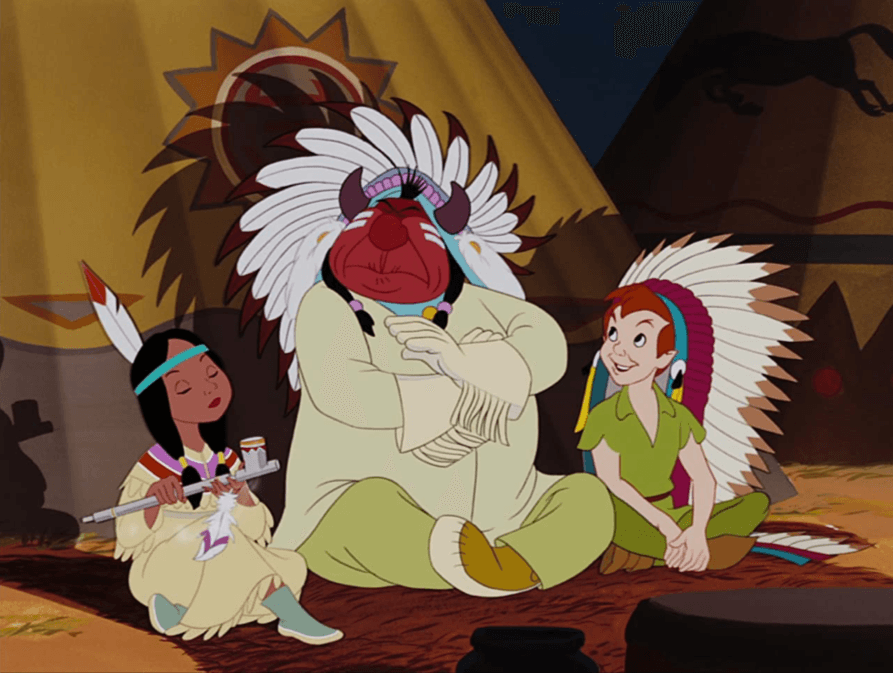 Peter Pan cuenta con uno de los momentos más obvios de racismo cuando Peter, Wendy y los niños perdidos están en el campamento de los indios del País de Nunca Jamás. Incluso hay momentos en donde les llaman 'pieles rojas'.
