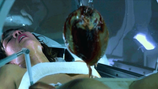 Una de las escenas más impactantes de las precuelas de Alien es la cesárea de Elizabeth Shaw en Prometheus. El momento es alucinante y escalofriante a la vez, ya que al final vemos el asqueroso ser que se gestaba dentro del cuerpo de Shaw.