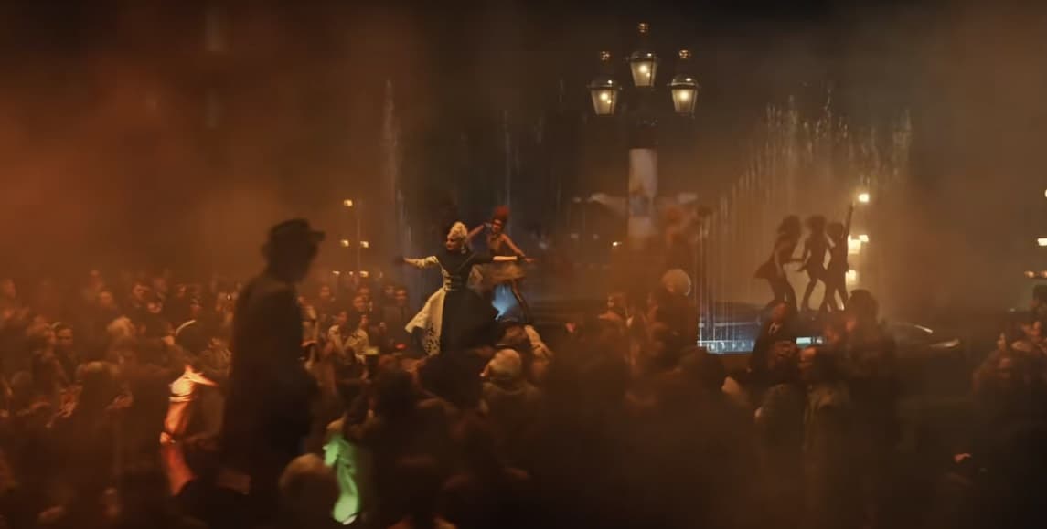 Uno de los looks que ya se conocían es el impactante vestido rojo que porta en una reunión donde parece no estar invitada y que revela cuando prende un fósforo. Si bien, la entallada prenda sale algunos segundos todo indica que es una las obras maestras que Cruella pudo mostrar al mundo, pero no le fue permitido.