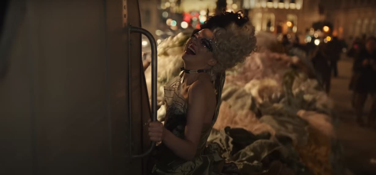 Cruella es una mujer fashionista por naturaleza y en la película se mostrará su transformación de mujer buena e inocente a la antagonista que se obsesiona por la piel de los dálmatas. Uno de los elementos más importantes es cómo viste y en los primeros segundos se puede apreciar que sus conjuntos hacen que sea una persona que puede pasar desapercibida con facilidad.