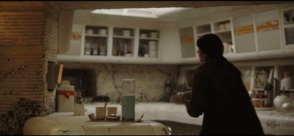 En el flashback de la infancia de Jyn, podemos verla en su casa y con sus padres, y por breves instantes también un gran vaso de leche azul, pero es poco probable que sea de bantha.