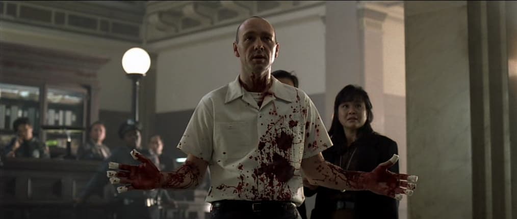 John asesina a la esposa del policía y le envía la cabeza. En consecuencia, cegado por el enojo, este último dispara contra John. Este final impactante fue planeado por Brad Pitt porque en el guion original su personaje recibía la cabeza de su perro.