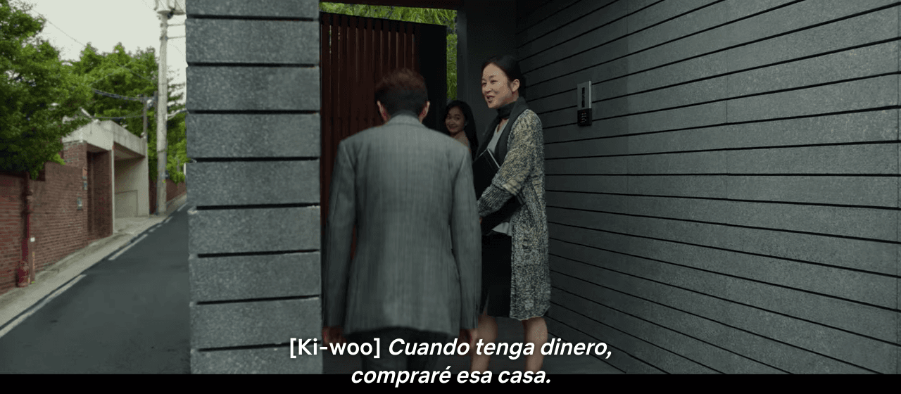 Sin embargo, en realidad, el desenlace del filme de Bong Joon-ho es bastante trágico. No sólo por las múltiples muertes que ocurren y el hecho que el Sr. Kim deberá esconderse en el búnker de la casa para evitar ir a prisión, sino también porque en el fondo existe esta sensación de que es muy poco probable que Ki-woo logre su meta de ser dueño de la ex-casa de los Park.