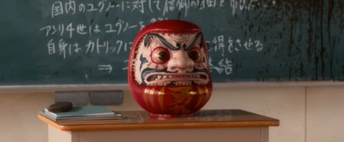 La primera prueba de El juego del calamar es casi idéntica al juego del Daruma, ya que el alumno que se moviera era asesinado por esa criatura mágica al instante.
