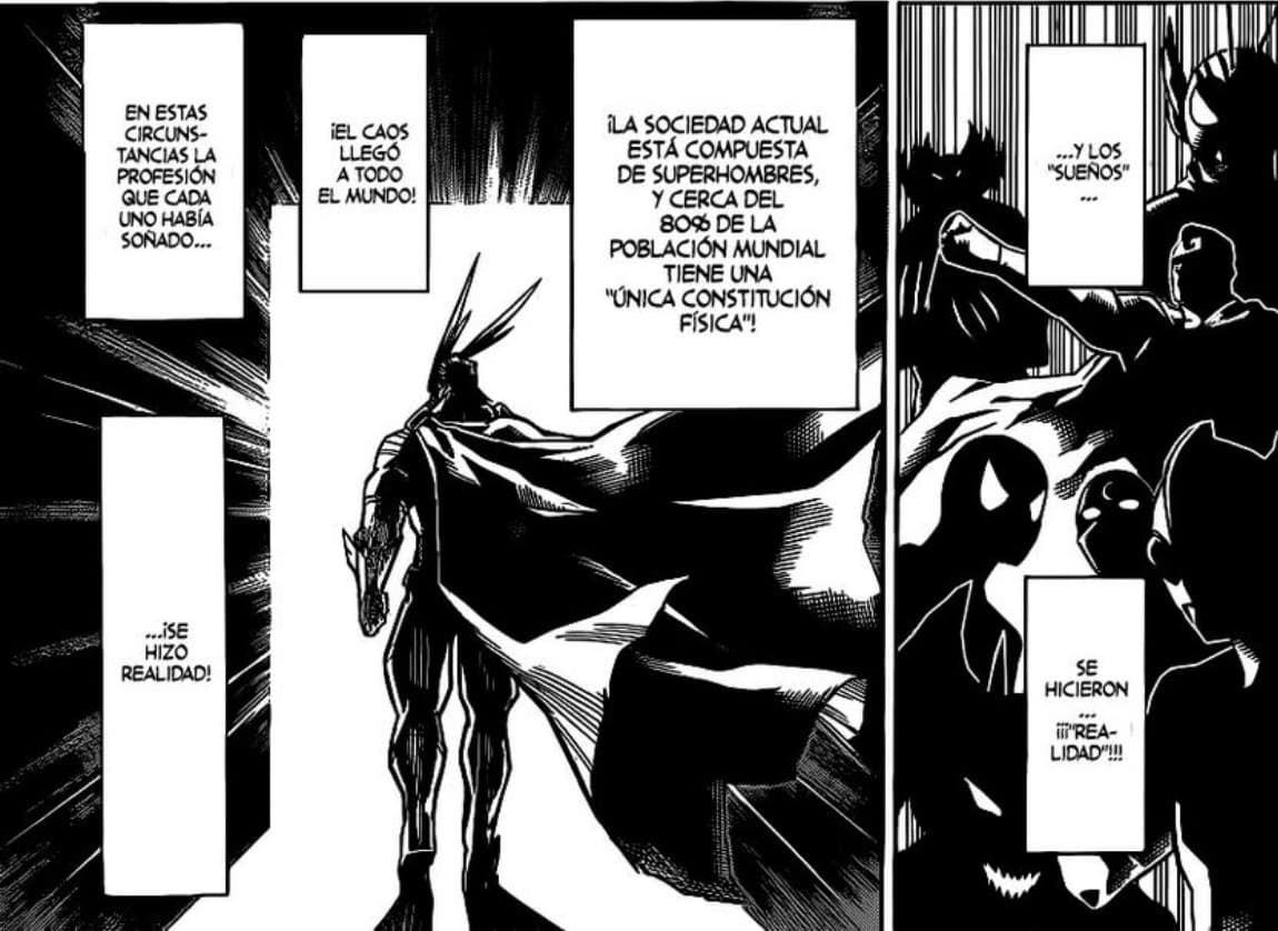 Al parecer, en respuesta Kohei Horikoshi hizo un guiño similar en su popular manga My Hero Academia. En el primer número de este manga, podemos ver una ilustración en donde el narrador nos cuenta que lo que antes era fantasía, de repente se convirtió en una realidad.