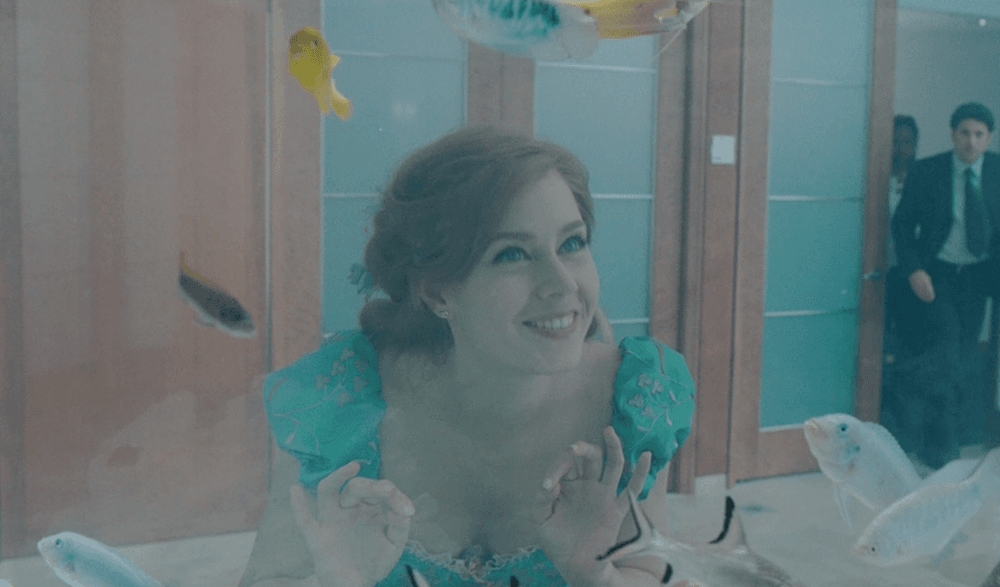 Giselle mira a través de un acuario y se escucha de fondo la canción « Part of your world» de La Sirenita.