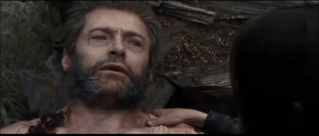 Ahora situémonos en el 2017 en la película Logan. Al final, Wolverine se encuentra agonizando, acostado de espaldas y con Laura a su lado.