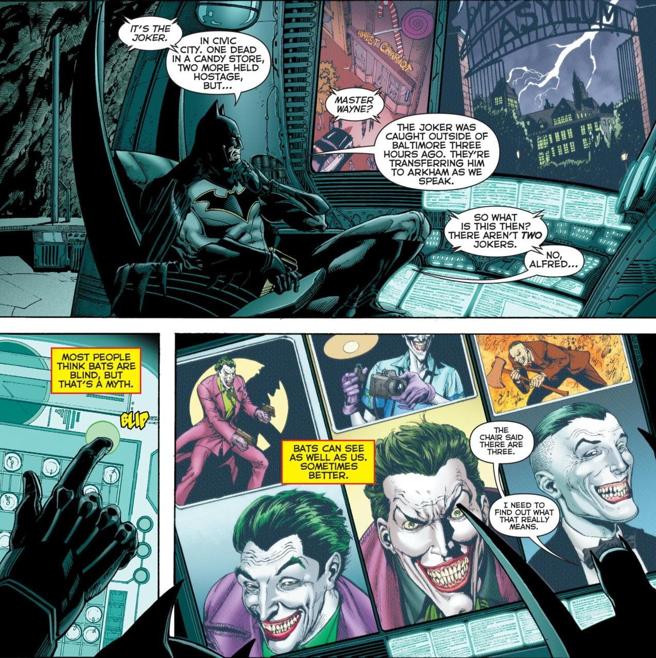 Esta teoría se basa en la historia que comenzó en Justice League #42 donde Batman le preguntó al omnipotente trono de Mobius la verdadera identidad del Joker, pero no recibió una sino tres respuestas.