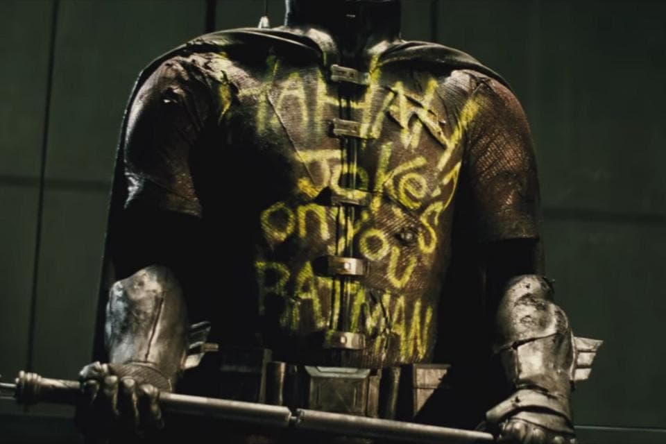 Esto sugiere que Robin ha caído en manos del Joker y que, además, Bruce Wayne ( Ben Affleck) tiene el traje allí en exposición en la Baticueva, como una suerte de recordatorio, de retorcida motivación para impedir que el Joker se salga con la suya.