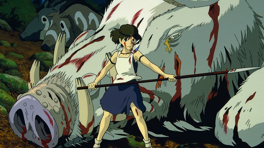 Hayao Miyazaki es un maestro en recrear personajes femeninos fuertes, y ese es el caso de San, una niña que fue criada por lobos, por lo que actúa como ellos. Es fuerte, ágil, rápida y sabe cómo usar armas. Además, es obstinada y muy protectora de todos los seres vivos.
