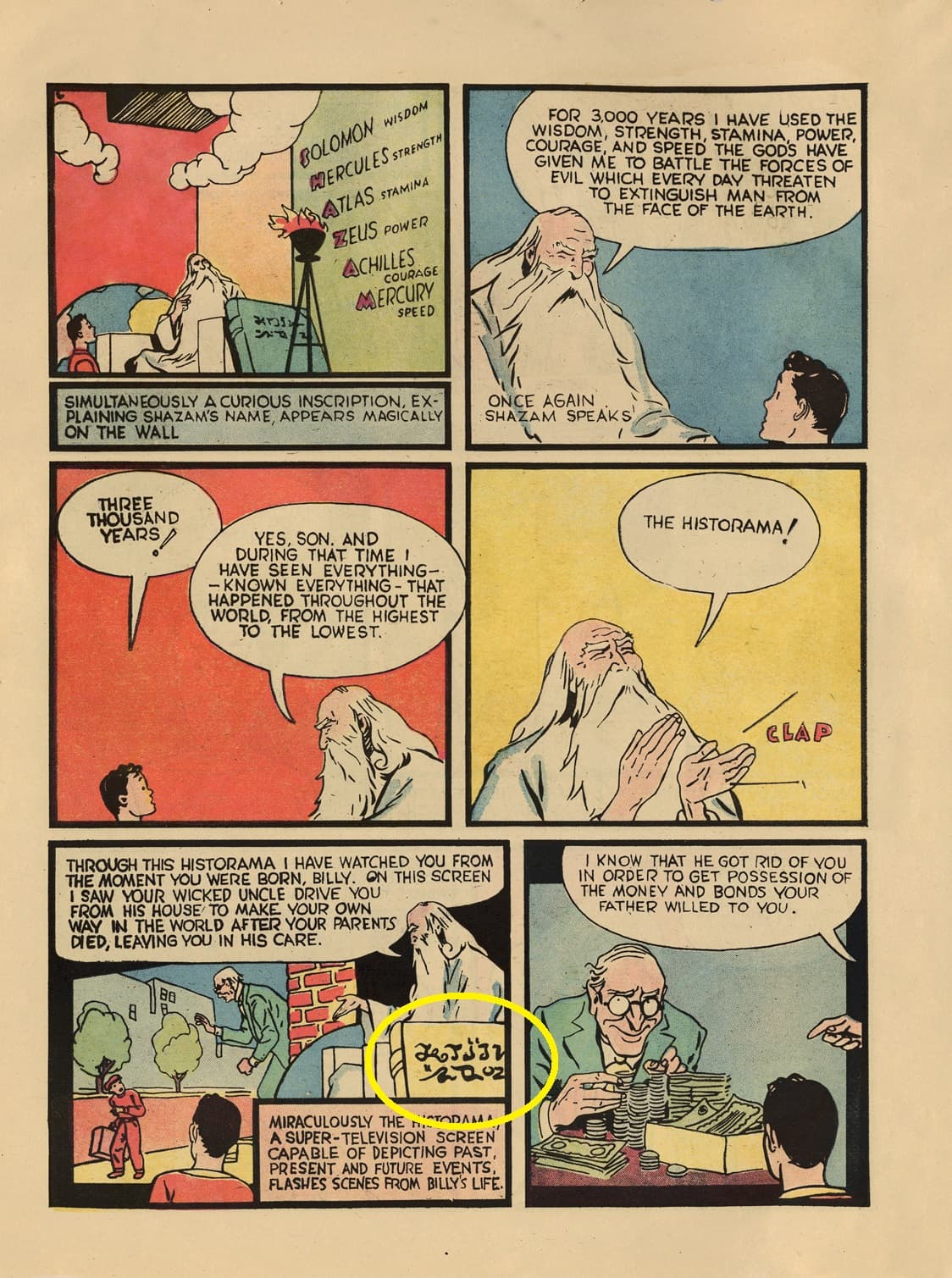 Los fanáticos del cómic original descubrirán que estos símbolos son una referencia a las viejas historias del Capitán. Estos aparecían desde el primer cómic del Captain Marvel, cuando Shazam! el hechicero le muestra a Billy cómo obtener sus poderes.