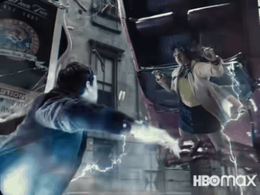 Sin embargo, en el primer teaser del logo de la película, el color azulado de estos rayos desaparece y en cambio vemos el tradicional y característico color amarillo que recarga e ilumina el traje y símbolo del superhéroe.