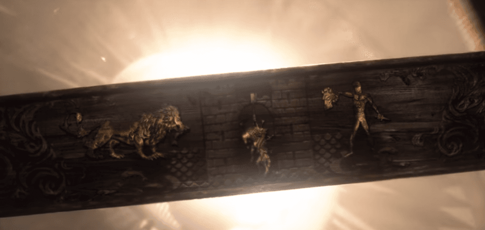 El cuerpo del niño estaba colgado en la pared, rodeado por un símbolo característico de los muertos, hecho con extremidades de otras personas asesinadas. Lo curioso es que, esa misma espiral la vemos debajo del castillo de Last Hearth en el mapa del opening, ¿tendrá algo que ver?