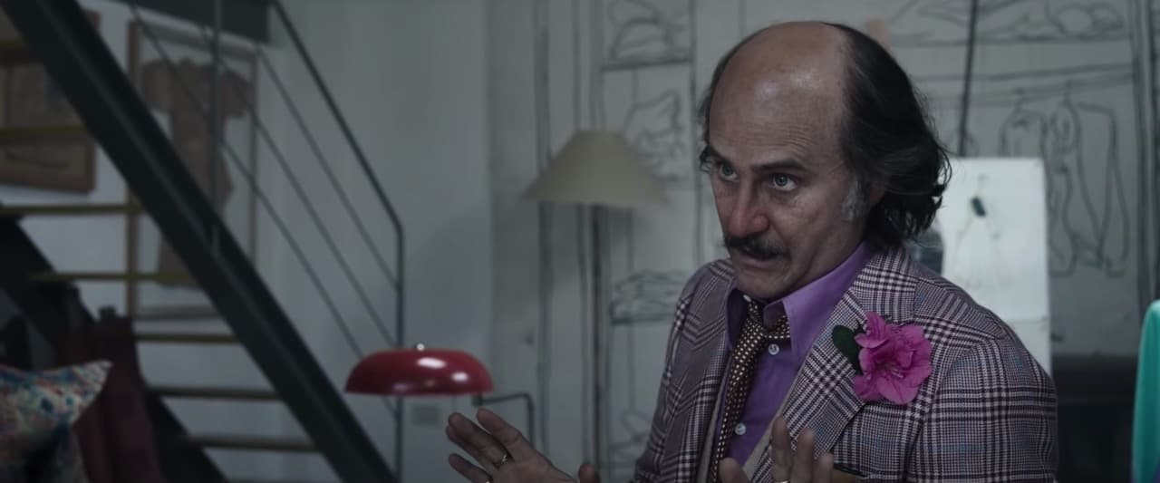 Pelo descuidado, calvicie, nariz grande, bigote y un semblante de hombre mayor son los elementos que contrastan con la imagen real de Jared Leto, pero que tuvo que sumar a su apariencia para dar vida a Paolo Gucci.
