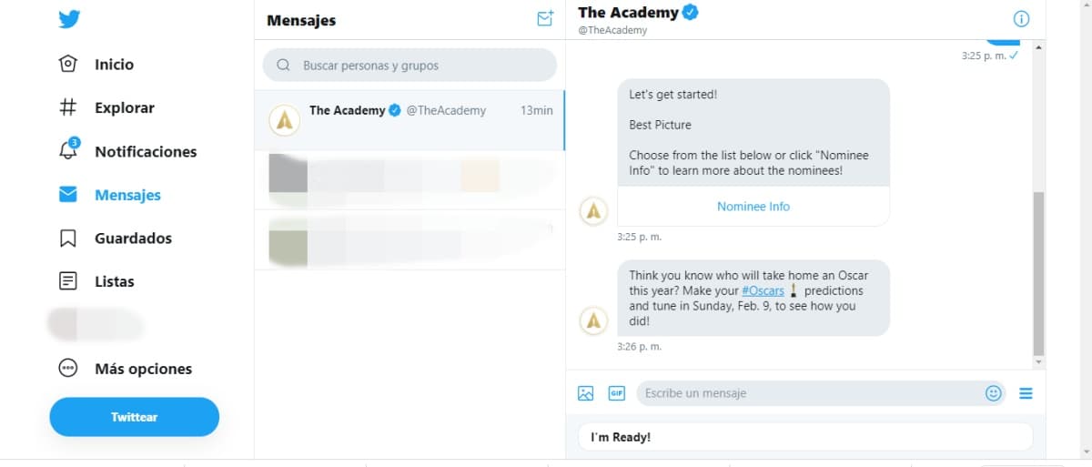 Gracias a un bot programado especialmente para el evento, puedes contestar una serie de preguntas acerca de tus favoritos por cada categoría.