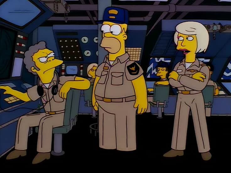 En el capítulo Simpson Tide de la novena temporada, Homero se une a la Marina y es enviado en un submarino nuclear a participar en los juegos de guerra anuales.