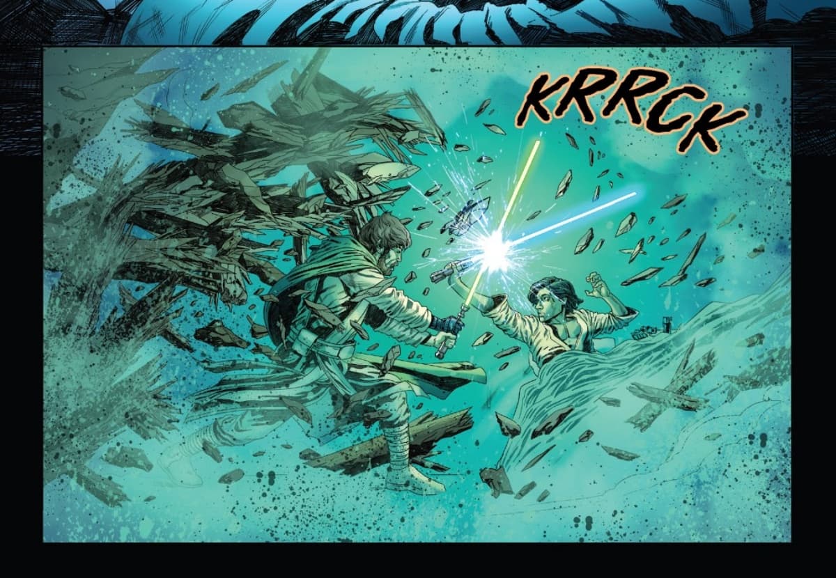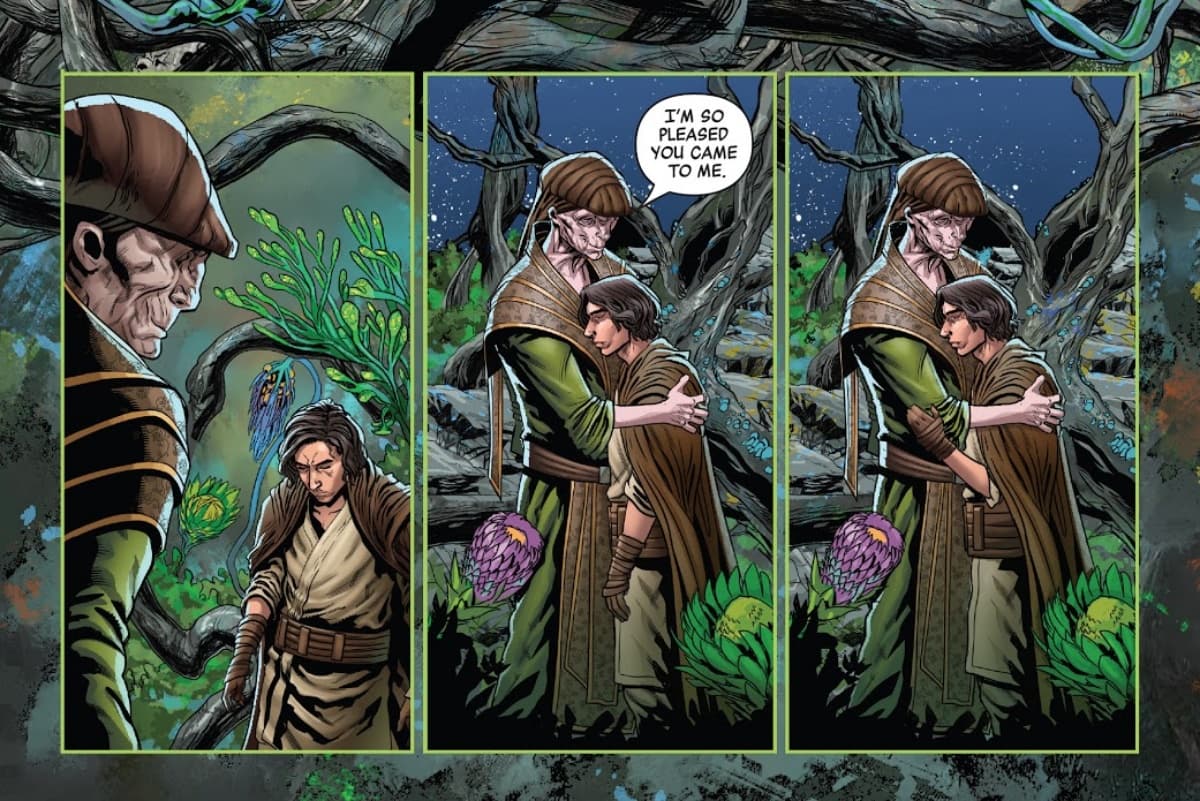 Luke los venció con una gran facilidad, pero Ren usó el encuentro para sembrar una semilla de duda en el padawan: «¿Estás seguro de que esta es la vida para ti?», «Sabes que hay otros caminos, ¿verdad?»