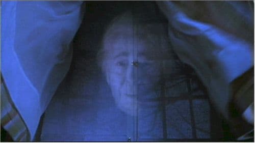 Cuando ella abre los ojos, esta imagen, un poco más impresionante y mirándonos directamente, aparece por tres frames: