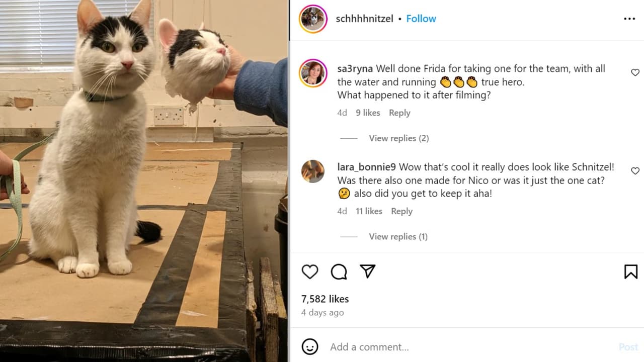 Pero lo que más sorprendió a los curiosos seguidores fue darse cuenta de que, en realidad, los gatos que interpretaban a Frodo no se parecían entre sí en la vida real, pues mientras Schnitzel tiene pelaje moteado, Nico es totalmente blanco.
