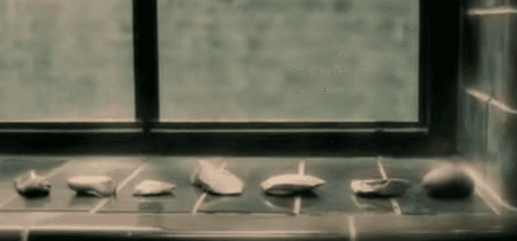 En la orilla de la ventana se pueden observar 7 piedras, las cuales presagian los 7 horrocruxes que hará más tarde, incluso Harry, el que nunca quiso crear.