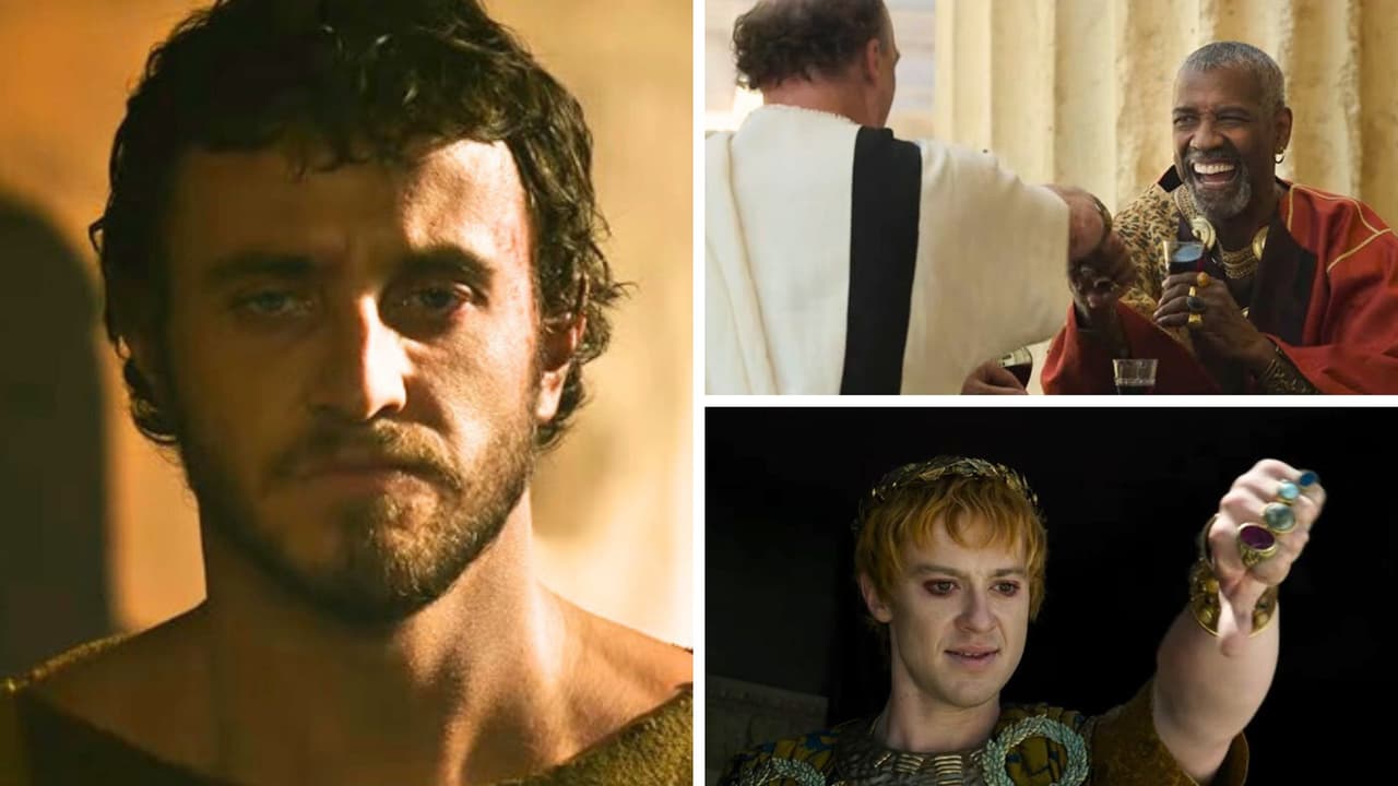 También el largometraje nos dio el primer vistazo de los dos nuevos coemperadores pelirrojos, Caracalla y Geta (interpretados por Joseph Quinn y Fred Hechinger). Estos hermanos existieron en la vida real y muestran un deseo de muerte y sangre, tal como su antecesor Commodus. Sin embargo, aún no se explica de manera específica cómo llegaron al poder.