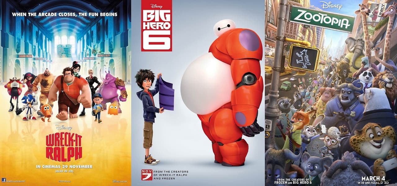 - Big Hero 6 (2014). Como Disney compró Marvel en 2009, la película reinventa algunos personajes de la editorial en la búsqueda de crear un universo animado heroico que iguale al MCU.