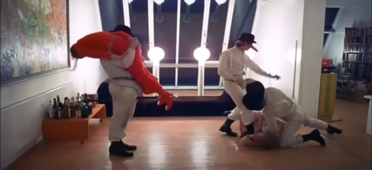 La escena en la que Alex y sus amigos atacan a una mujer en su casa mientras cantan Singing in the Rain es una de las más controversinales del cine; no solo por el abuso sexual, sino por la calma del personaje principal al cometer un acto tan cruel.