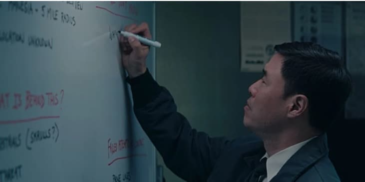 Jimmy Woo (al igual que todos) está fascinado por la anomalía de Westview, y se dedica a escribir preguntas e ideas en una pizarra, así como los posibles vínculos.