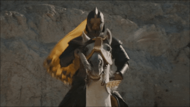 El campeón se burla de la reina y orina frente a ella, cabalga y Daario, quien apenas se mueve, solo da dos golpes: uno al animal y otro al campeón. ¿Ganador? Daario, quien también celebra orinando con sutil gentileza.