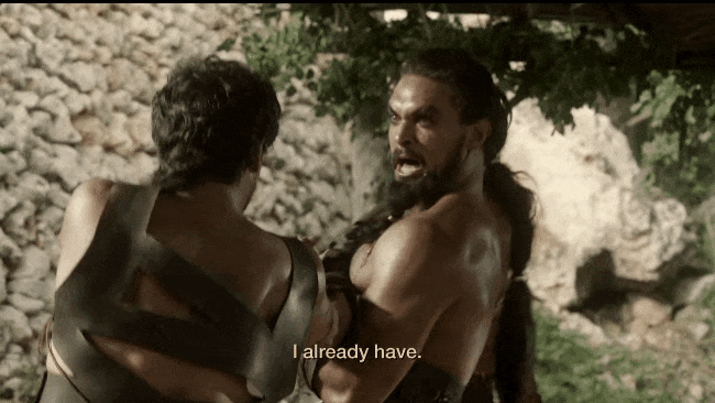 Mago desafía a Khal Drogo, luego de que éste le prohibiera violar a las mujeres del pueblo que asaltaban por petición de Daenerys.