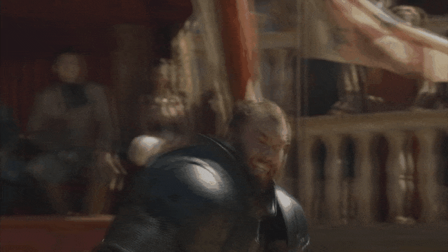 Oberyn parece tener la batalla ganada con sus graciosos movimientos, se confía y La Montaña y lo tira al suelo y le hace puré la cabeza. Literal.
