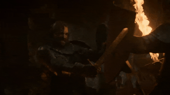 Si hay algo que El Perro detesta es el fuego, así que cuando Beric Dondarrion cubrió su espada en llamas, sabíamos que el combate sería memorable. Una pelea de caballero, golpes de espada aquí y allá y al final, Sandor se repone y “corta” a su oponente en dos.