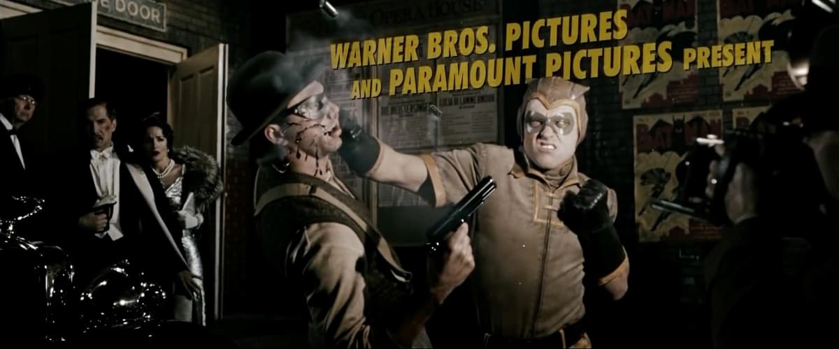 Si pones más atención, incluso puedes ver que salen del Gotham Opera House. Lo más raro es que también hay carteles de Batman en el callejón, lo que significa que el encapuchado existe como un personaje ficticio en el universo de Watchmen, o incluso que es un héroe tan popular que ha sido inmortalizado en los cómics, cualquier cosa podría ser cierta.
