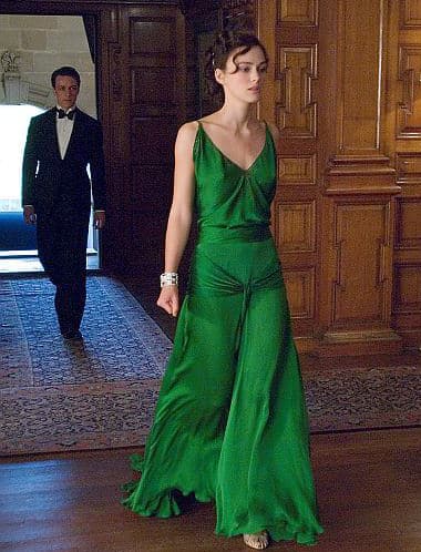 La bella y estilizada figura de Kiera Knightley se vio exaltada con el exquisito vestido verde esmeralda que lució cuando interpretó a Cecilia Tallis en Atonement