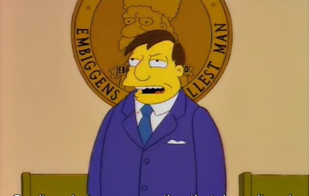 Si hablamos de West, no podemos pasar por alto de ninguna manera a Joe Quimby, el alcalde de Springfield conocido por su actitud despreocupada sobre sus propios ciudadanos. También, pese a que no es un político propiamente dicho, podríamos agregar a Mr. Burns que con su enorme capital y actitud lo asemejan bastante a uno de ellos.